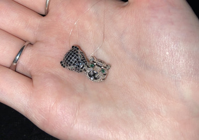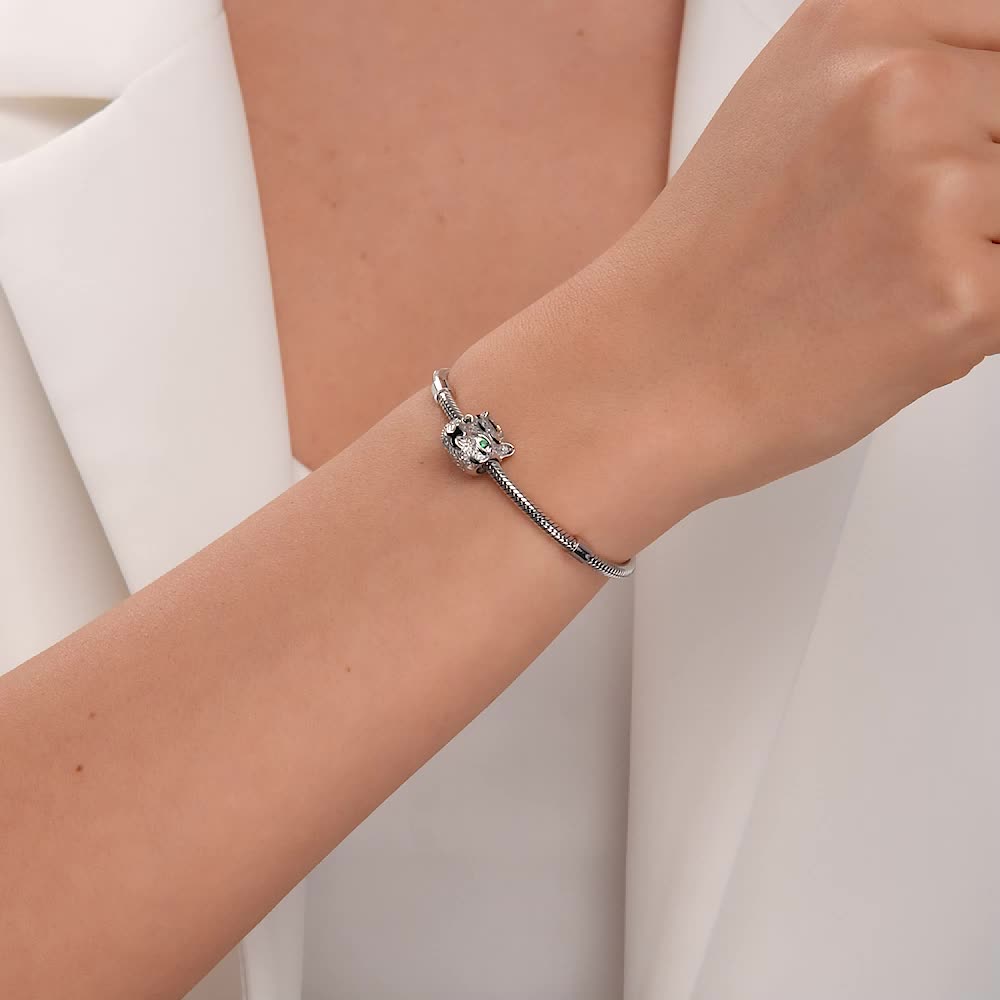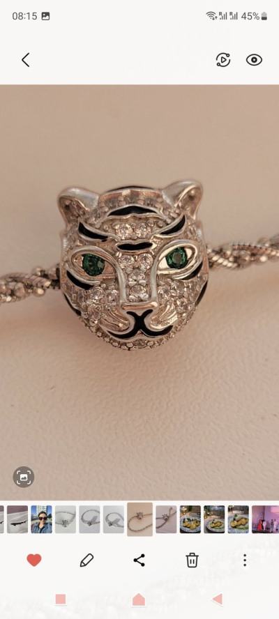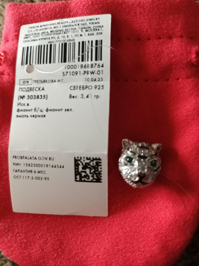 Шарм хорошо детализирован.Мордочка выполнена очень реалистично.Глаза зелёные фианиты.Производитель Китай.