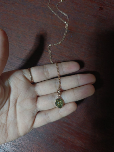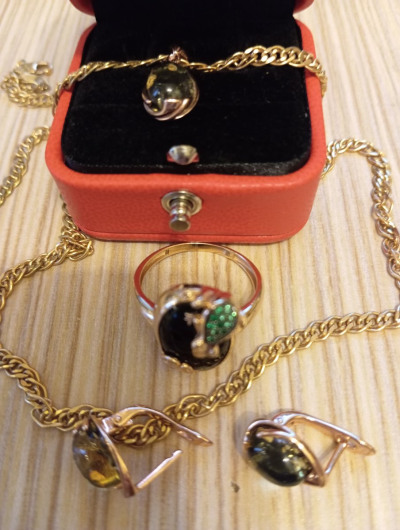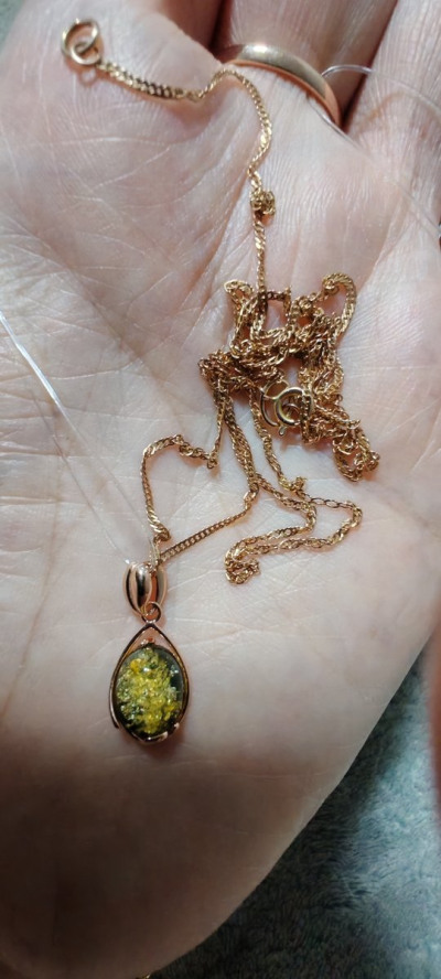 Очень красивая !зелёный янтарь в золотой оправе!!! Это очень красиво, спасибо большое.