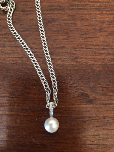 Очень нежная, стильная подвеска. Жемчуг натуральный речной (не имитация). В дополнение маленькие фианиты. Что немаловажно, подходит для цепи среднего размера, долго искала для своей цепочки, так как многие подвески имеют очень маленькое ушко, через которое не проходит колечко цепочки. Отличный товар в подарок и чтобы порадовать себя!