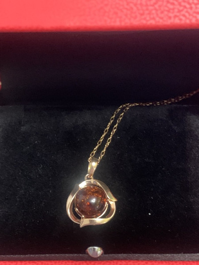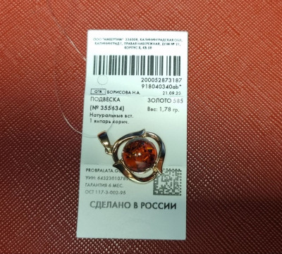 В редких случаях характеристики украшения или упаковка могут иметь отличия от представленных на фото или в описании.Подвеска с 1 янтарем коричневым природным, тип огранки Б;