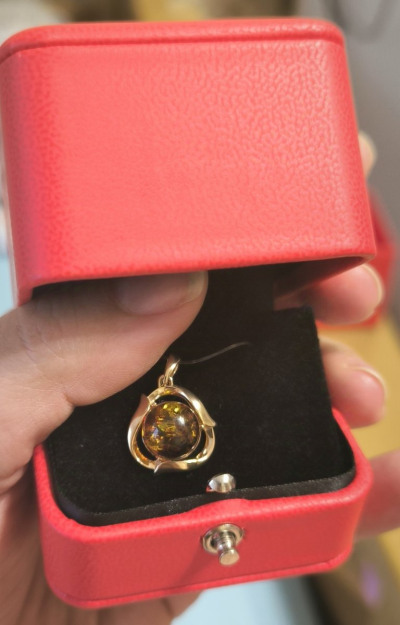 Подвеска с натуральным янтарем в оригинальном золотом обрамлении. В моем янтаре различимы вкрапления, которые придают подвеске своеобразие.
