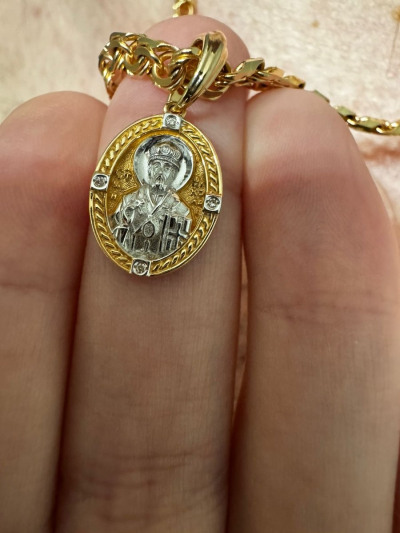 Золотая подвеска с бриллиантами "Святой Николай Чудотворец"