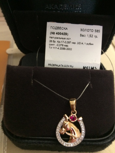 Наступает 2026 год — год Красной Огненной Лошади по восточному календарю! Увидела эту подвеску и сразу заказала он-лайн. Вживую подвеска оказалась ещё привлекательней - золото 585; вес 1,52 гр; один рубин и 28 шикарных бриллиантов с пожизненной гарантией - ВСЁ очень гармонично! А главное - это мой год!!! Всем рекомендую этот символ наступающего 2026 года, не пожалеете!