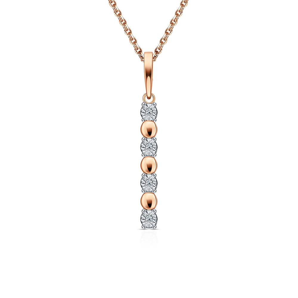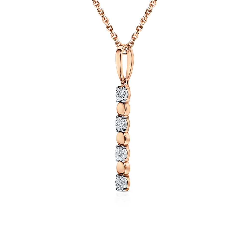 Подвеска с 4 бриллиантами природными, 0.02 карат, огранка круг 57 граней, цвет 3, чистота 6, тип огранки А;