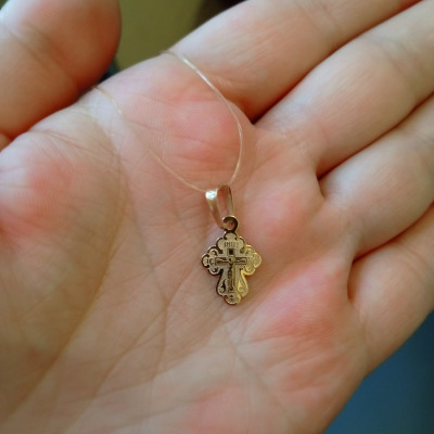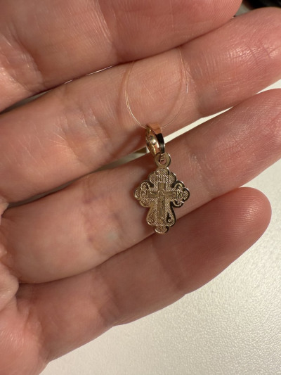 Сам крестик понравился, маленький и аккуратный,очень красиво блестит,нет острых углов, для малышей самое то.Но ушко ,оно большое,тонкое, место сплава кажется быстро может сломаться если ребенок будет дергать за крестик.Можно переплавить конечно, посмотрим как получится.