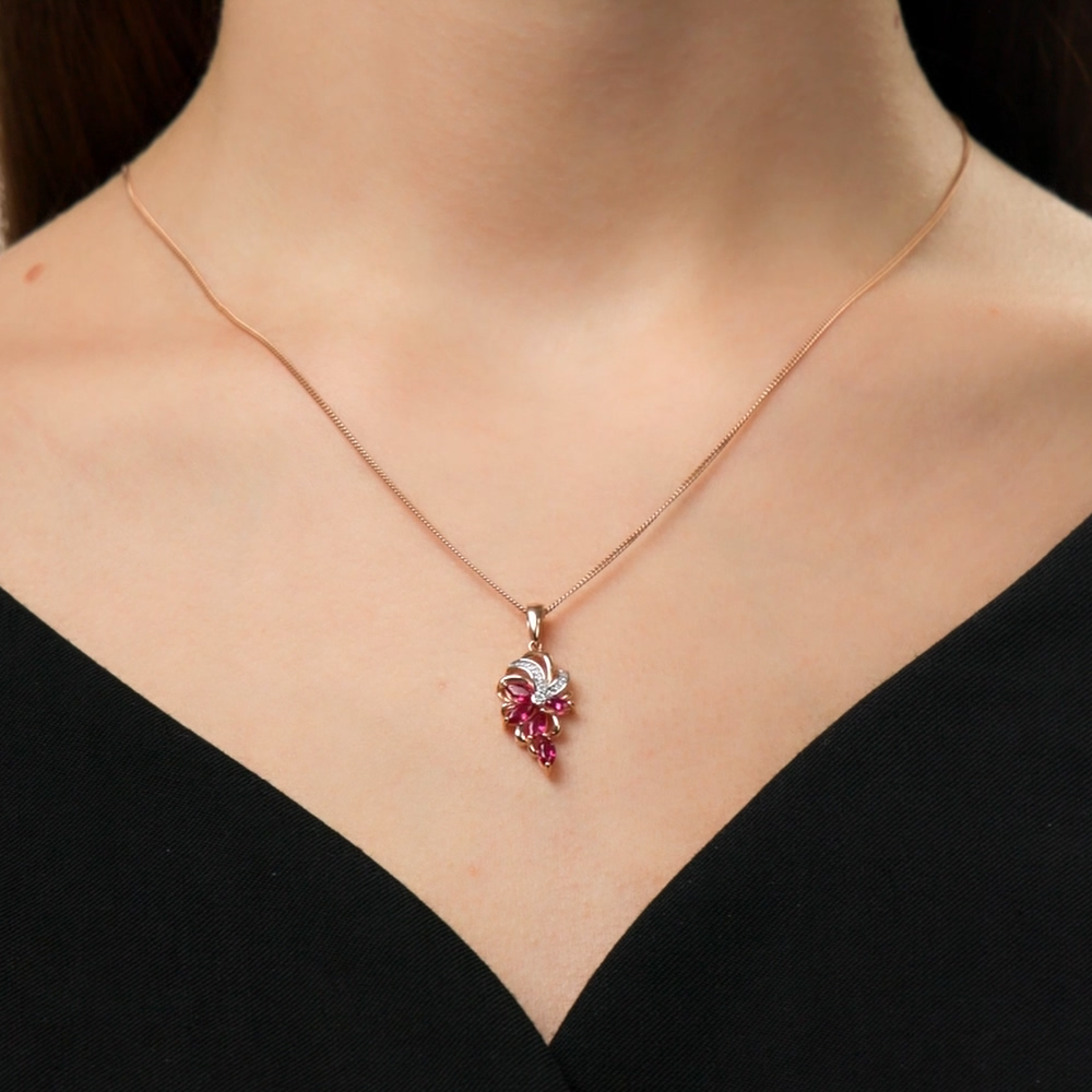 Золотая подвеска с бриллиантами природными и рубинами выращенными