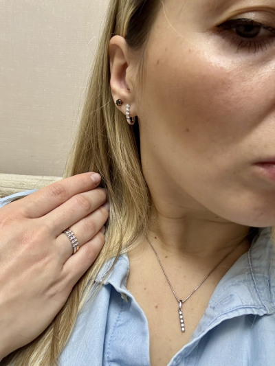 Давно на неё смотрела,приобрела после кольца,в итоге собрала комплект)) Подвеска заметная!