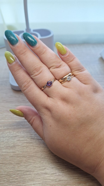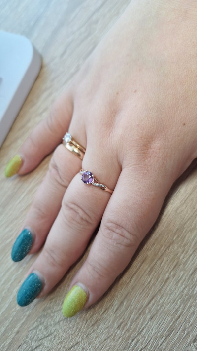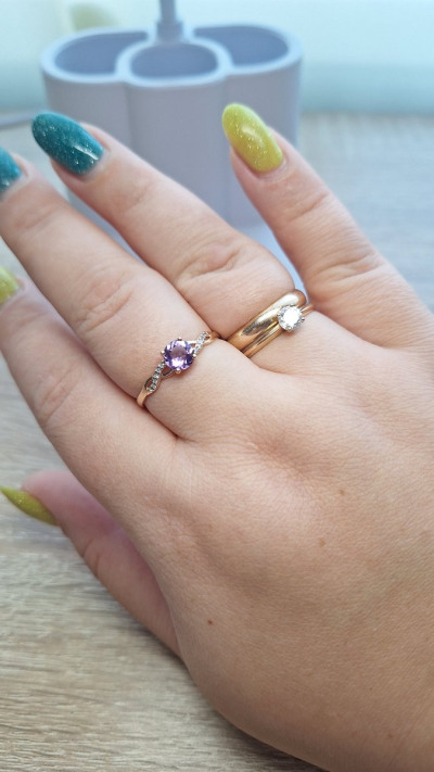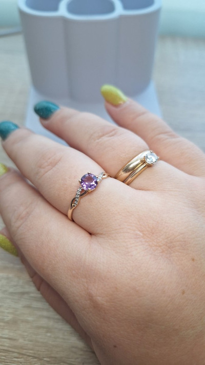 Кольцо нежное, красивое!!! Аккуратно смотрится на руке!!! Камни на солнце переливаются замечательно!!! Я очень довольна выбором!!!