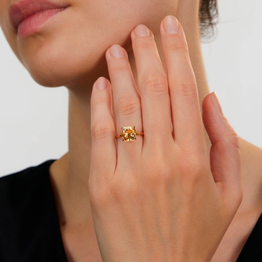 Кольцо с цитрином весом 1.91 карата, обладает великолепным блеском и украшен огранкой типа Б.