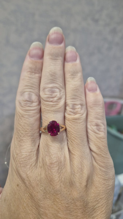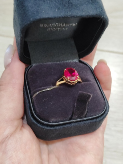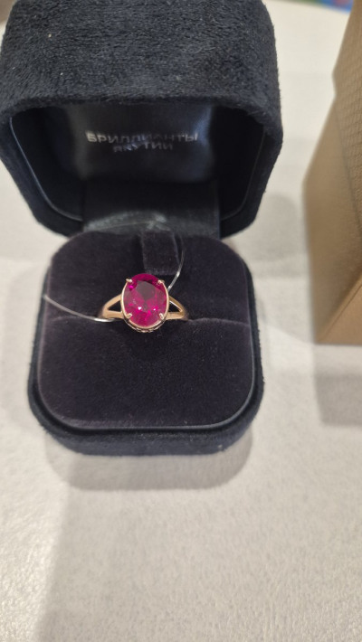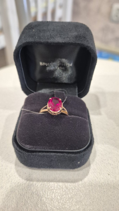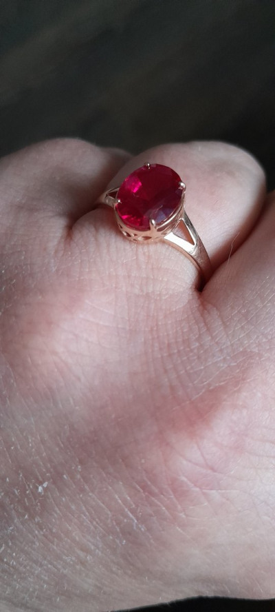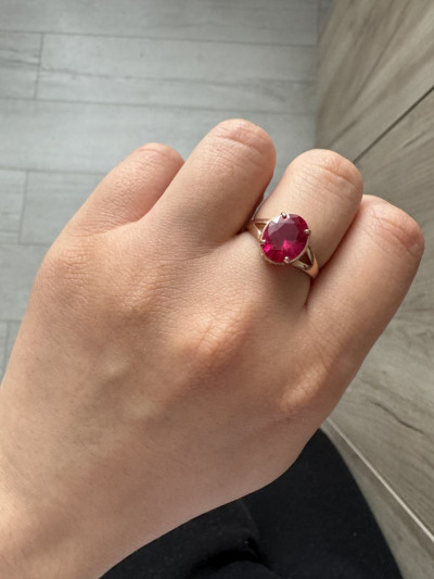 Кольцо с 1 рубином синтетическим, 2.94 карат;
