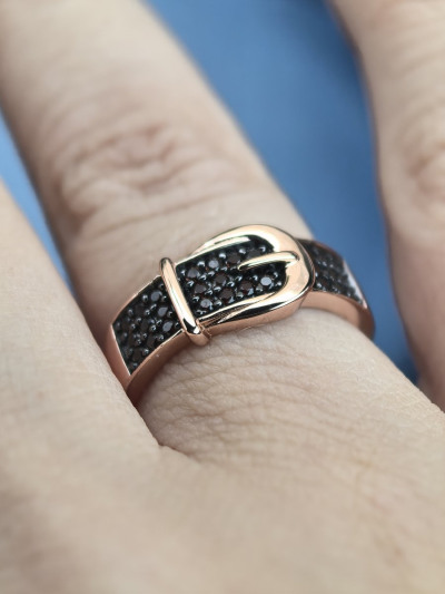 Взяла 17 размер. Потому что на момент покупки моего размера не было, и, ориентируясь на отзывы, где пишут, что оно слегка маломерит, рискнула. Идеально подошло, но мне показалось что все же маломерит но радует, что с пальца не спадает. Смотрится дорого, стильно идеально вписалось в мой гардероб, подходит комплект и под джинсы с рубашкой и под платье.