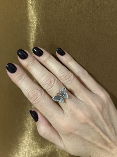 Кольцо, вставка: кошачий глаз голубой синт.;