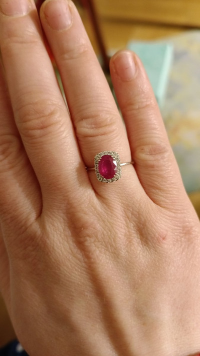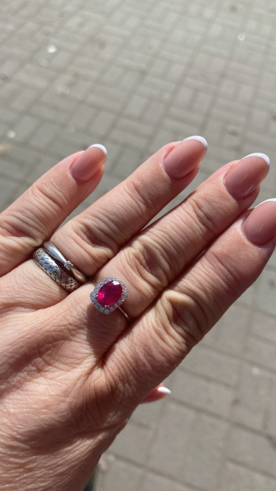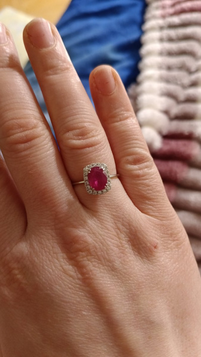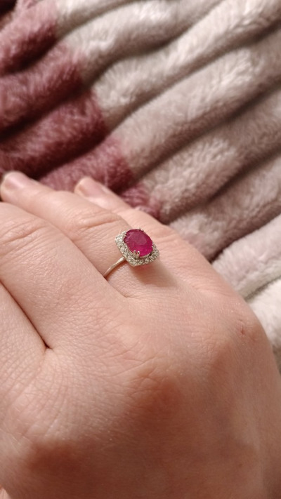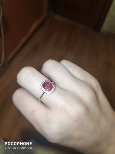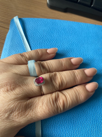 Колечко не плохое.Мне понравился рубин.Камень большой,в обрамлении фионитов.Чуть приподнят,мне наоборот это нравится.Единственный недостаток,очень тонкая шинка.Надо быть аккуратной,быстро деформируется