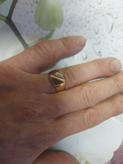В редких случаях характеристики украшения или упаковка могут иметь отличия от представленных на фото или в описании.Кольцо с 1 ониксом;