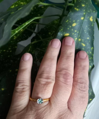 Тонкое колечко из позолоченого серебра, изумруд нежного, салатного оттенка. К сожалению комплект не смогла подобрать, т.как в серьгах камни намного ярче)