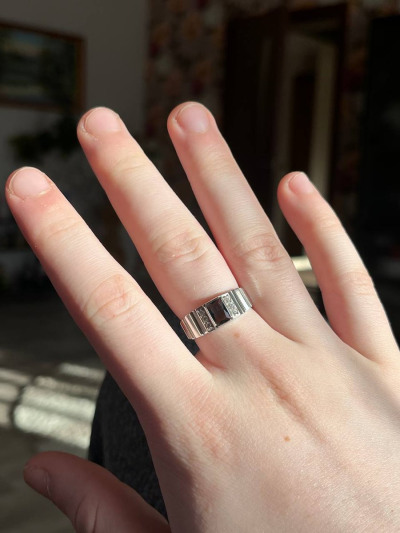 Отличное кольцо. В живую смотрится лучше чем на фото. Не мешает пальцам. Рекомендую к приобретению 👍