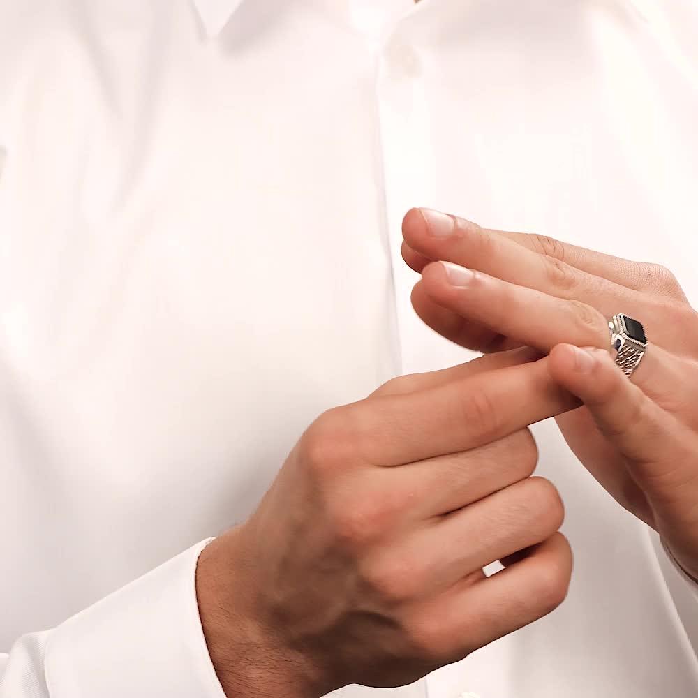 Это серебряное кольцо с фианитами - идеальный аксессуар для мужчин, подчеркивающий их статус и престиж. Изготовленное в России, оно весит 4.4 г и выполнено из серебра 925 пробы. Строгая геометрическая форма кольца гармонично сочетается с любым стилем одежды, будь то деловой костюм, фрак или спортивная одежда.