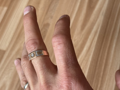 На сайте присмотрел это кольцо, заказал, привезли быстро. Очень красивая печатка с бриллиантами, хорошо гармонирует с обручальным кольцом. К покупке рекомендую.