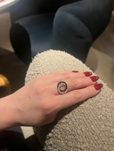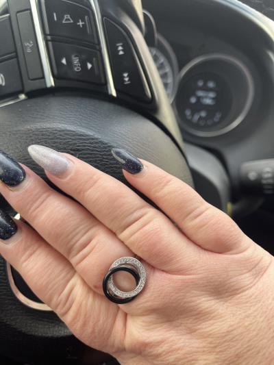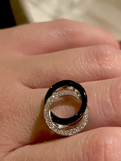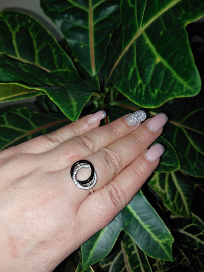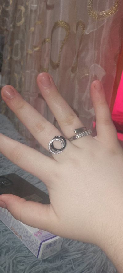 Кольцо красивое, миленькое, выполнено интересно, размер написан в размер. Пришло чуть более толстое, чем я ожидала, но вышло даже лучше - нет ощущения, что кольцо косается кожи, оно будто парит.