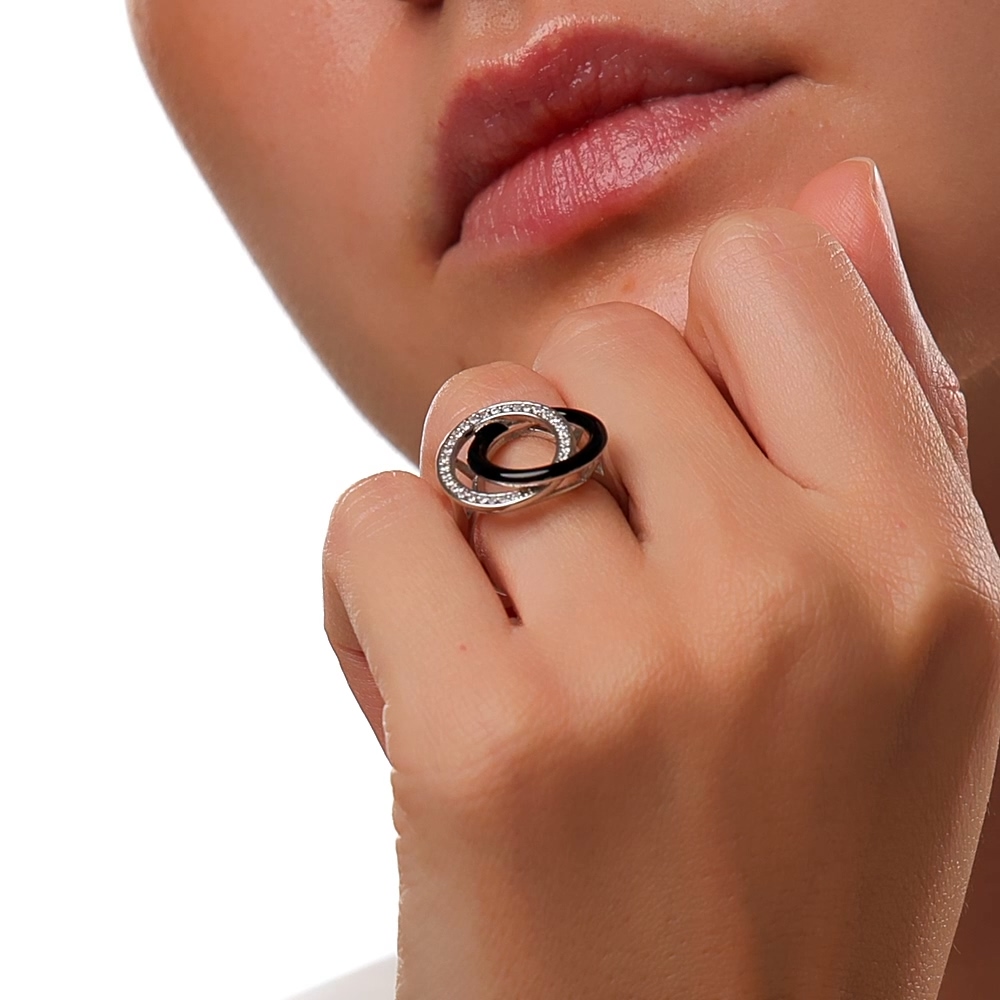 Что сказать ,на фото видно ,что смотрится оно очень красиво ,сочетание чёрной керамики и камней бесподобно.Купила к серьгам и кулону с леопардом
