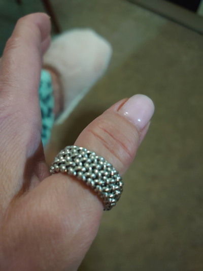 Широкое, яркое кольцо. С очень интересным плетением. Купила к нему в набор прекрасные серьги, есть такой же браслет и колье.