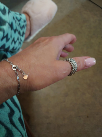 Долго присматривалась к нему У меня есть такое золотое - оно мягче! Серебряное жестче и нужно брать на пол размера больше! Учитывайте этот момент В носке очень удобное Смотрится эффектно Прекрасно сочетается как с серебром, так и с белым золотом