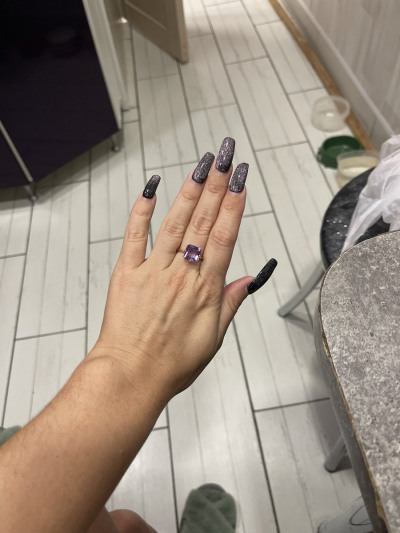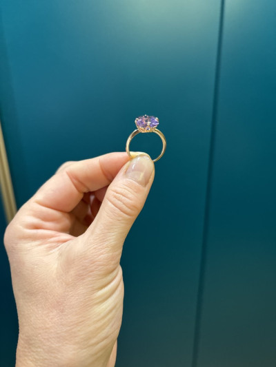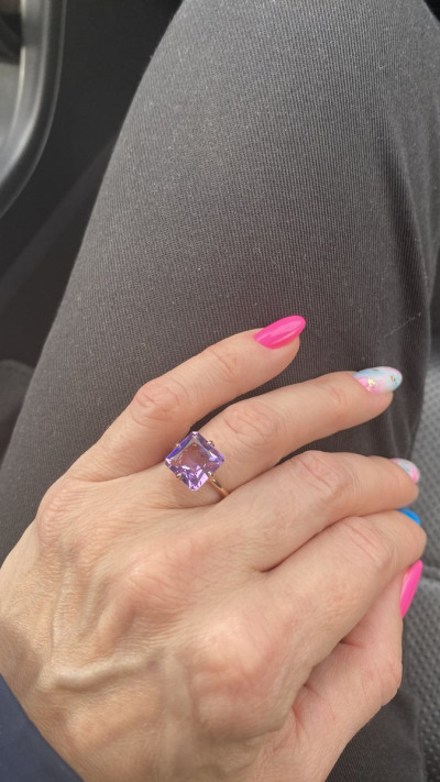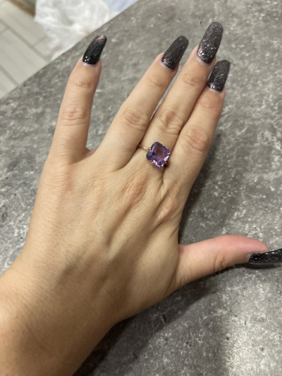 В редких случаях характеристики украшения или упаковка могут иметь отличия от представленных на фото или в описании.Кольцо с 1 аметистом природным, тип огранки Б;