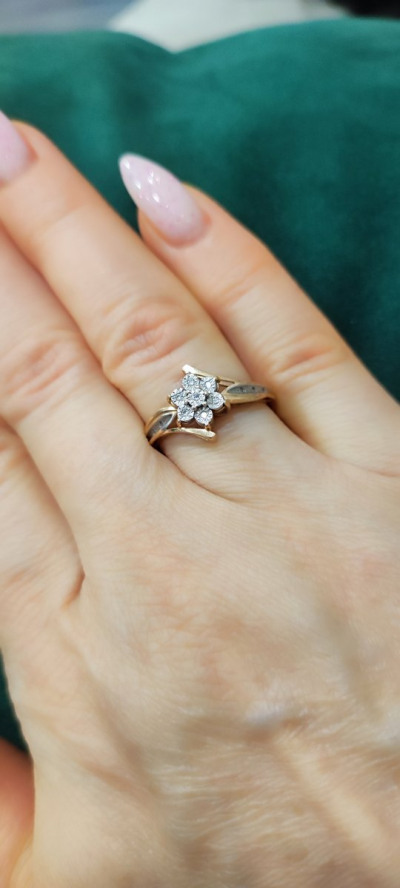 Кольцо с 7 бриллиантами, 0.03 карат, огранка круг 17 граней, цвет 2, чистота 2, тип огранки А;