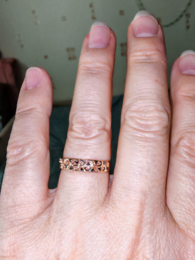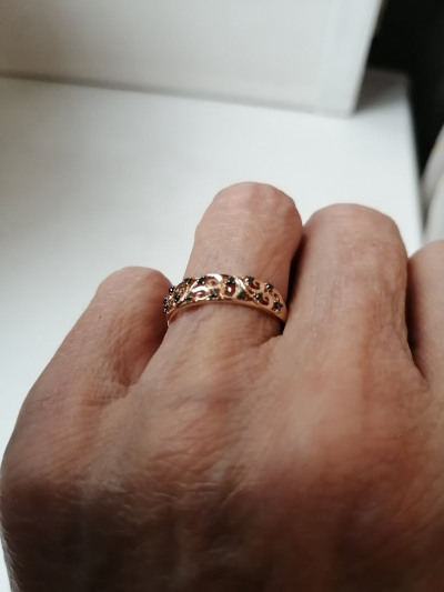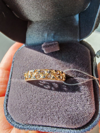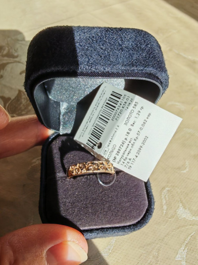 Очень красивое ажурное кольцо, давно к нему присматривалась, наконец купила! Бриллианты мелковаты, но блестят, очень греют душу 😄. Шинка тонкая, удобная, кольцо очень украшает пальчики. Вся информация на бирке есть,коробочка подарочная шикарная. Рекомендую!