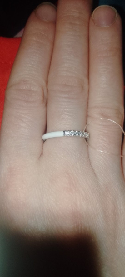 Очень милое белое колечко, хорошо сочетается с любым образом, так как цвет нейтральный. Также его хорошо сочетать с другими кольцами.