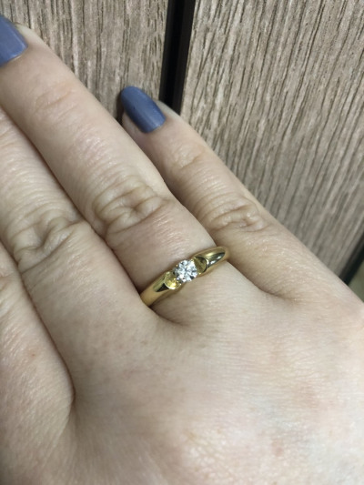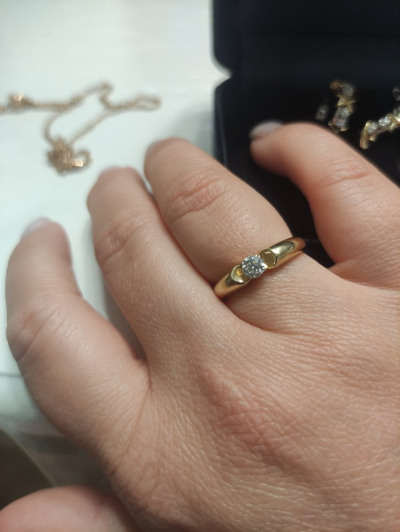 Взяла как обручальное. Полновесное кольцо 4,17 г (19 размер), без пустот, с бриллиантом 0,256 ct. 3/6, как заявлено. Удобное и красивое, бриллиант чистый и «сверкучий»
