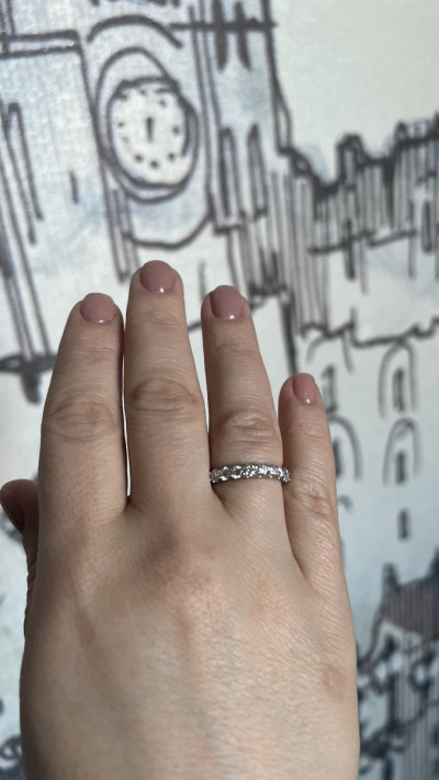 Очень красивое кольцо ,камера не передает всю красоту . У меня есть лайфхак что бы кольцо не царапалось , можно обметать пружинкой тонкой резиновой Регулировка размера . Мне например кольцо на безымянном велико А с этой пегилуровкоц могу носить спокойно и плюс кольцо не будет царапаться )) Ношу не каждый день а на выход, надеюсь камни будут целы . Хочу еще платиновое кольцо с одним камнем что бы в комплекте носить