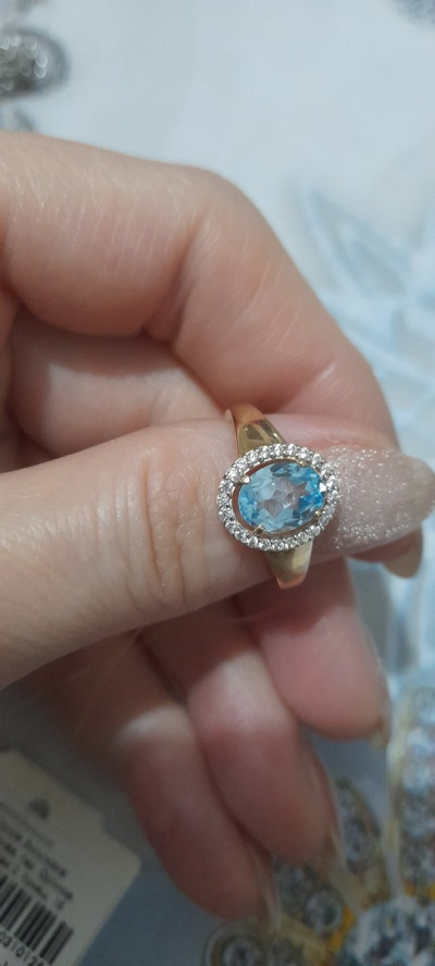 В редких случаях характеристики украшения или упаковка могут иметь отличия от представленных на фото или в описании.Кольцо с 1 топазом скай природным, 1.46 карат;