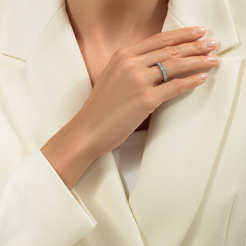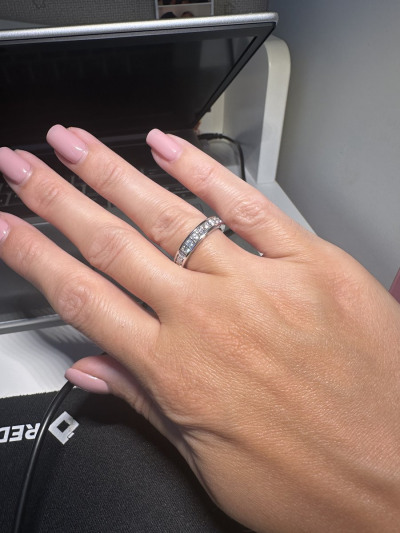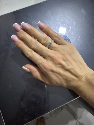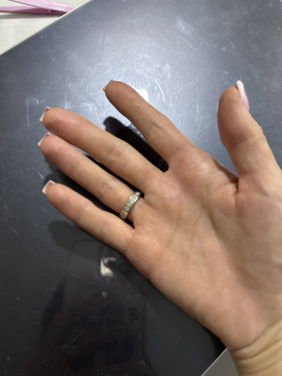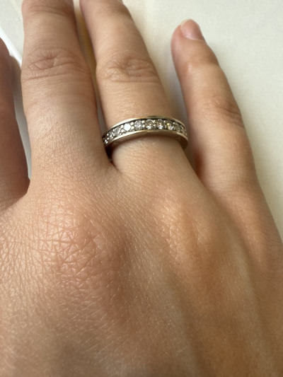 Красивое! Массивное, бриллиантовая дорожка на весь диаметр, как и хотела 😍Красиво смотрится на тоненьком пальце.