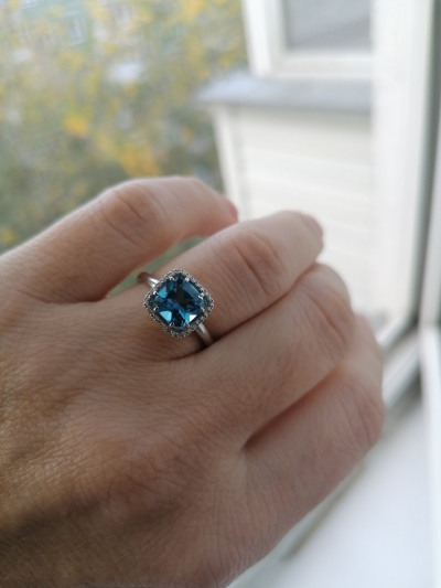 Очень красивое кольцо, смотрится потрясающе. Топаз свисс, по моему, самый красивый из всех