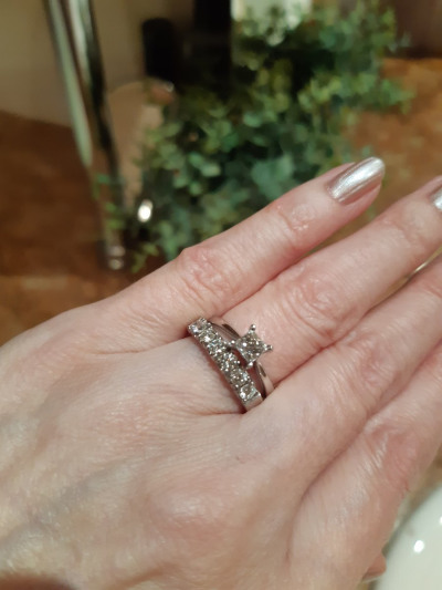 Любимое колечко, фото не передает блеск бриллиантов, оно очень удобно на пальце, камни не цепляются.