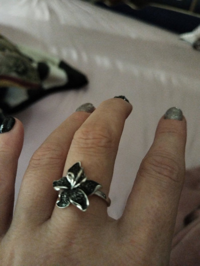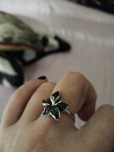 Очень красивое кольцо-цветок в виде черной лилии 🌺, приобрела гарнитур с сережками и подвеской 😍