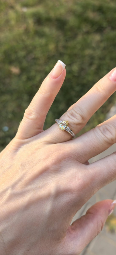 Теперь это мое самое любимое кольцо, оно такое изящное, сочетание желтого камня с бриллиантами идеальное