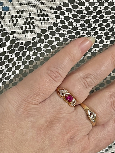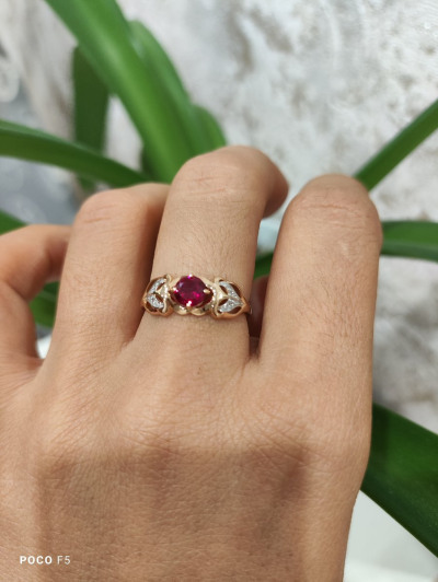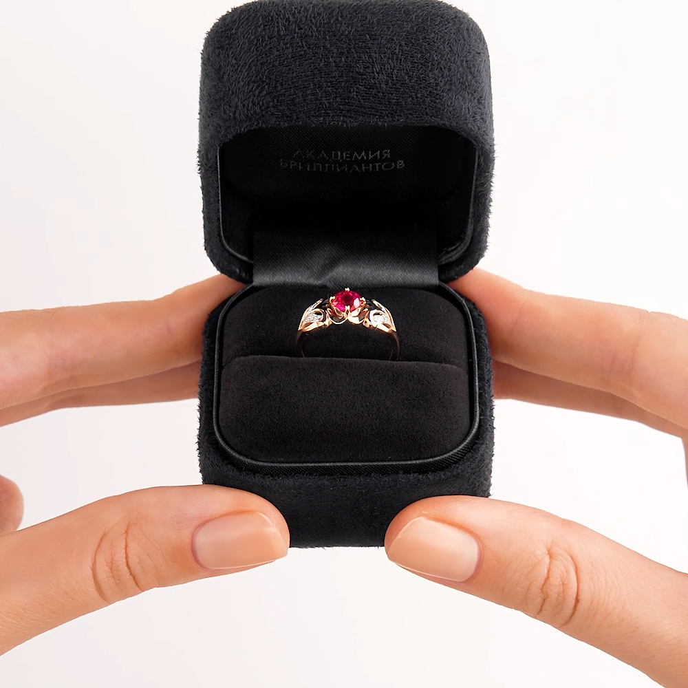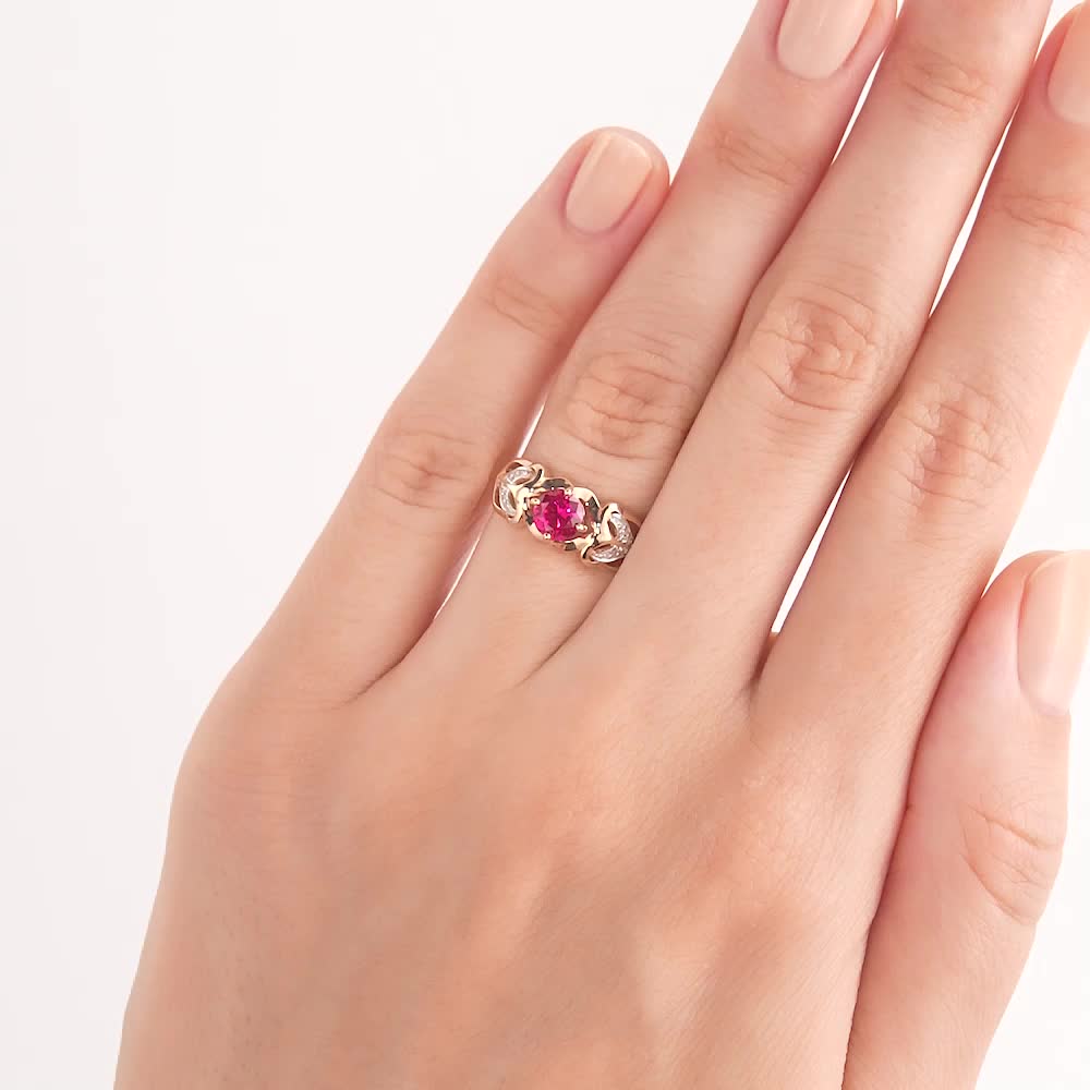 Золотое кольцо с бриллиантами природными и рубинами выращенными