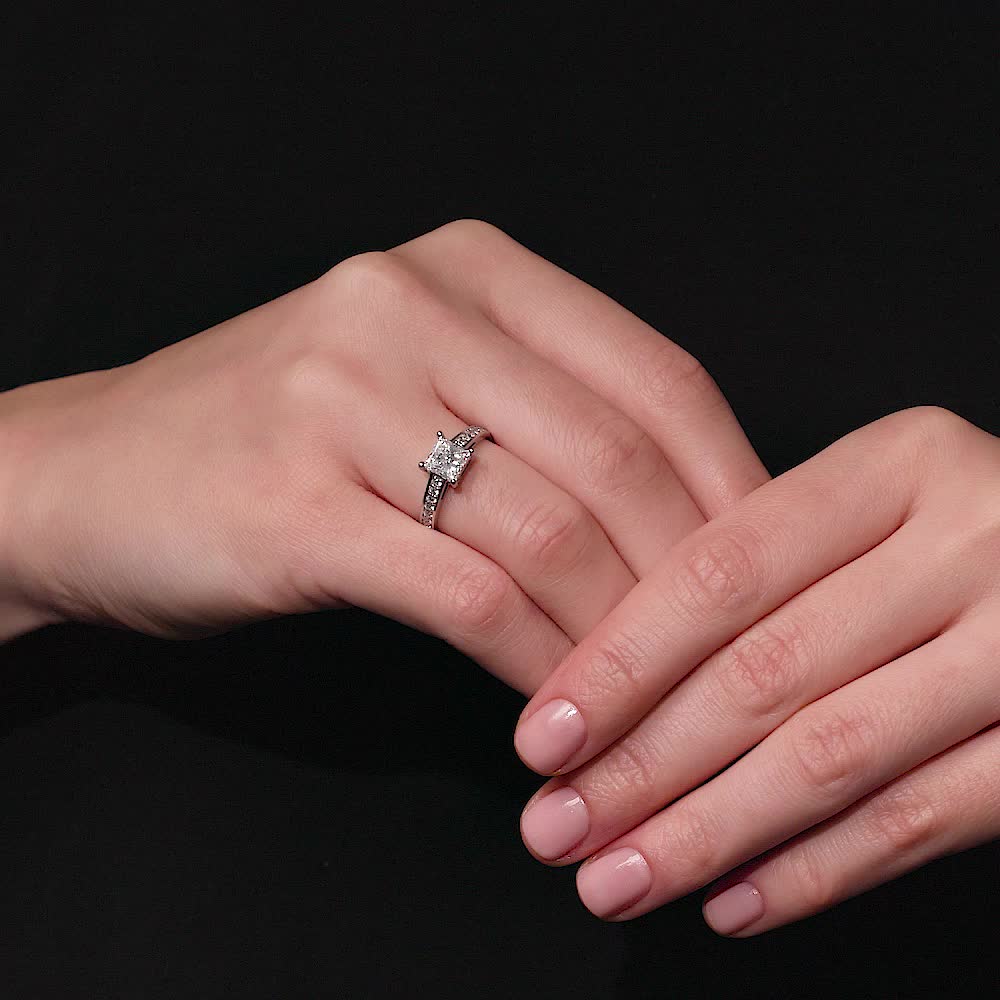Кольцо с 1 бриллиантом природным, 1.01 карат, огранка принцесса 65 граней, цвет 2, чистота 6, тип огранки А;