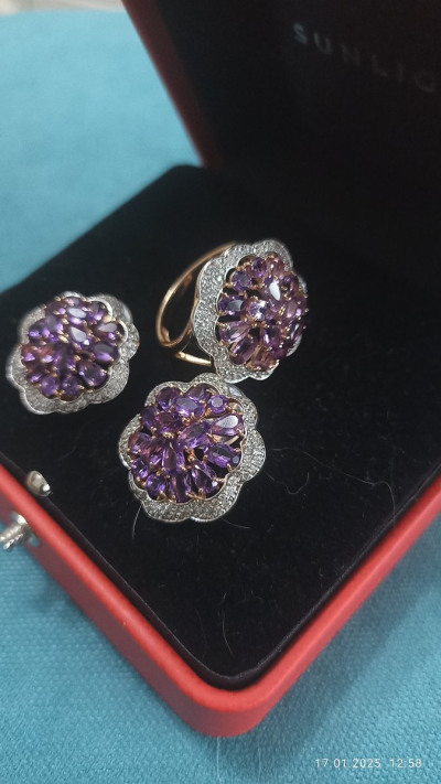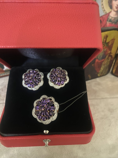 Очень красивый комплект аметисты сверкающ е завораживать!