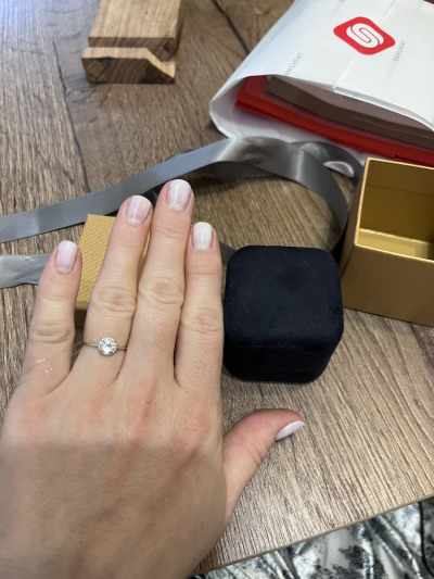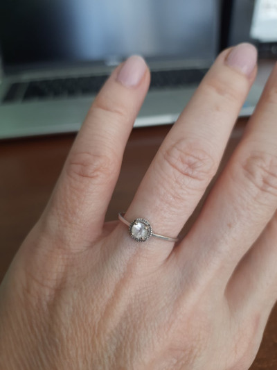 Прекрасное колечко на каждый день в офис. Минимилистичный дизайн, при внимательном рассмотрении открывается крупный камень в обрамление маленьких. Мне нравится! Я дала ему своё название: "Я и моя команда!"