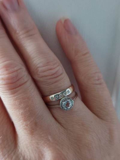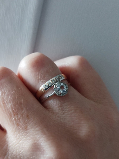 Хорошее, минималистичное кольцо, из плюсов белое золото и натуральные камни-топаз и бриллианты; брала для свадьбы, со скидкой вышло вообще дешево, учитывая материалы кольца; аккуратно смотрится, но и не банальное обручальное