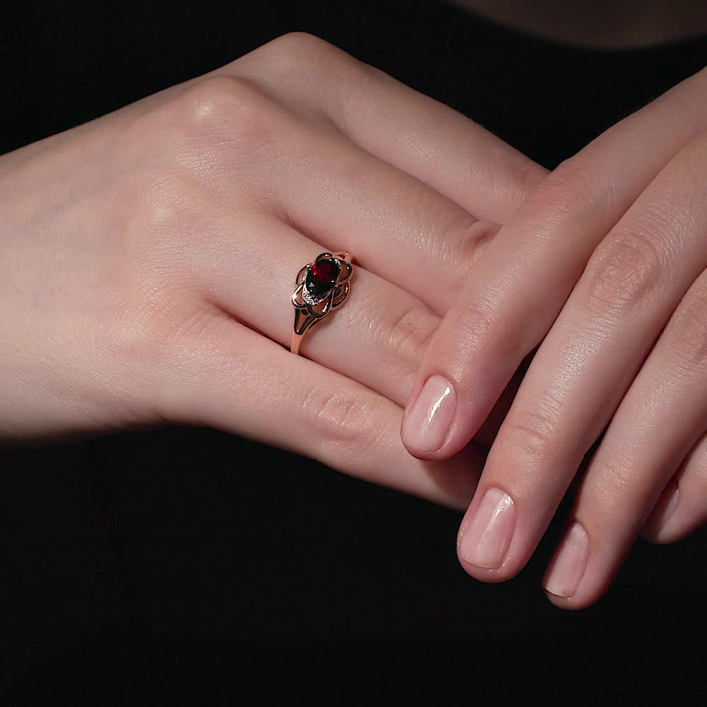 В редких случаях характеристики украшения или упаковка могут иметь отличия от представленных на фото или в описании.Кольцо с 1 гранатом природным, тип огранки Б;