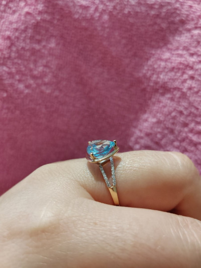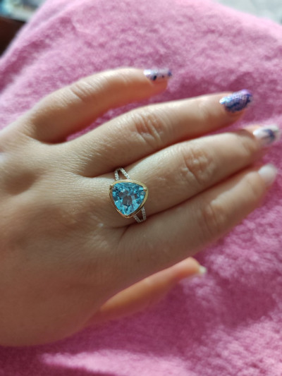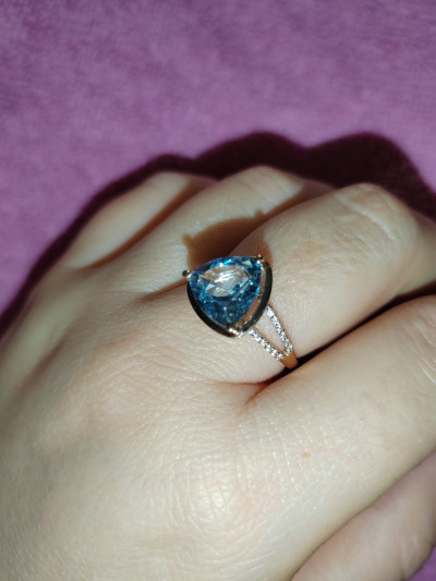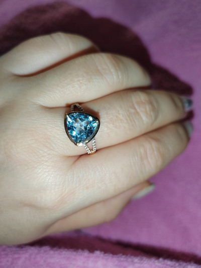 Великолепное кольцо, топаз яркий, чистый, прозрачный, смотрится стильно.
