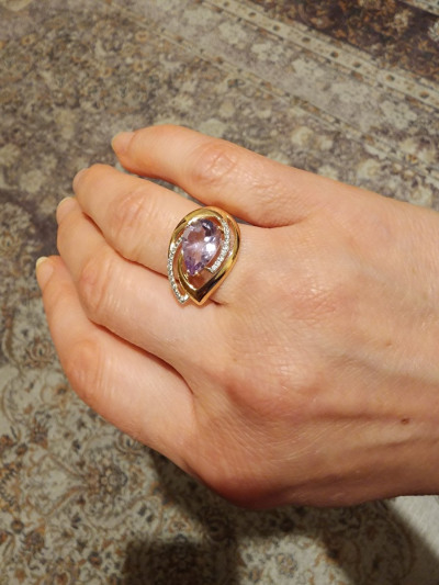 Кольцо с аметистом и фианитоми очень необычное, красивое и удобное. Камень яркий, дизайн отличный. Покупайте.