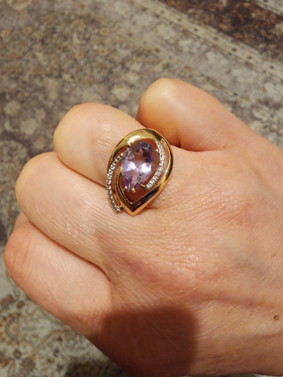 Сказать, что кольцо понравилось - ничего не сказать.)) Я в восторге!!! Натуральный камень нежно-сиреневого цвета в обрамлениии искрящихся фианитов способны создать праздничное настроение в любой день при любых обстоятельствах.)