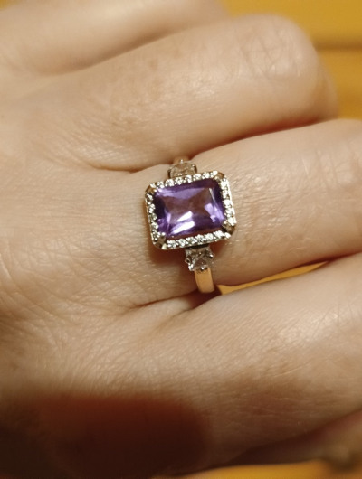 В редких случаях характеристики украшения или упаковка могут иметь отличия от представленных на фото или в описании.Кольцо с 1 аметистом природным, тип огранки Б;