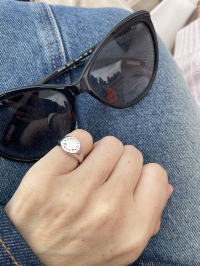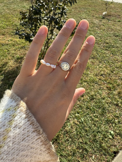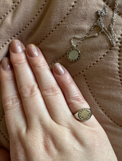 Очень часто ношу это колечко, есть небольшие царевны из-за эксплуатации, но если не присматриваться пристально, их не видно.
