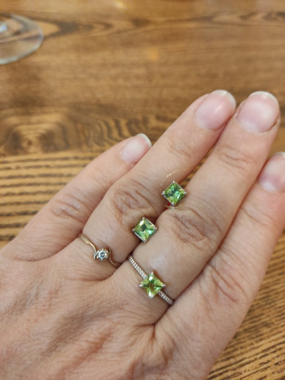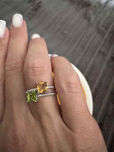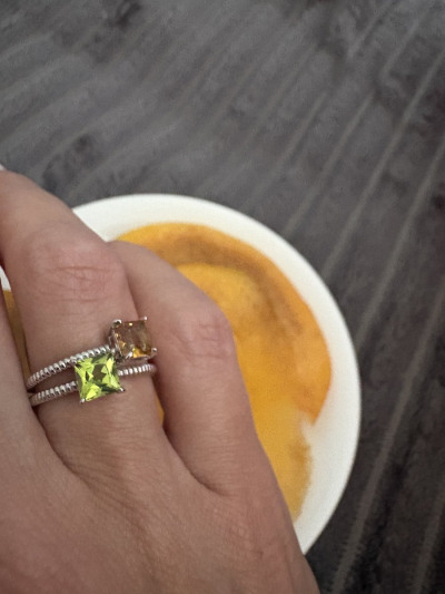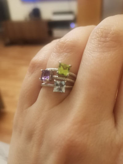 Брала несколько колец, чтобы носить сетами. Это понравилось больше всего, цвет очень красивый, насыщенный и гармонично сочетается со всеми остальными колечками.